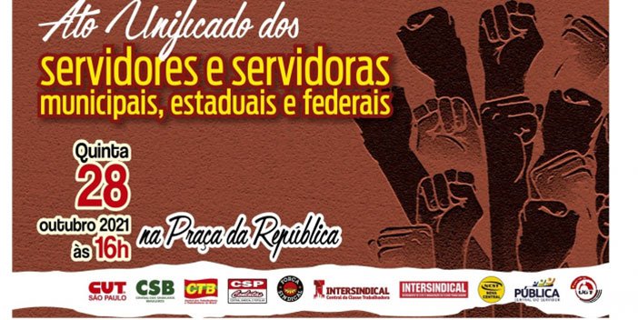 “28 de outubro é o Dia dos Servidores e das Servidoras, mas diante dos ataques dos governos federal, estadual e municipais, neste ano será celebrado com um Dia de Luta do conjunto do funcionalismo público nas três esferas em todo país contra a Reforma Administrativa e em defesa dos Serviços Públicos. Por isso estamos mobilizando trabalhadores e trabalhadoras de toda base cutista para este grande ato unificado na Praça da República”, comenta o professor Douglas Izzo, presidente da CUT-SP.
