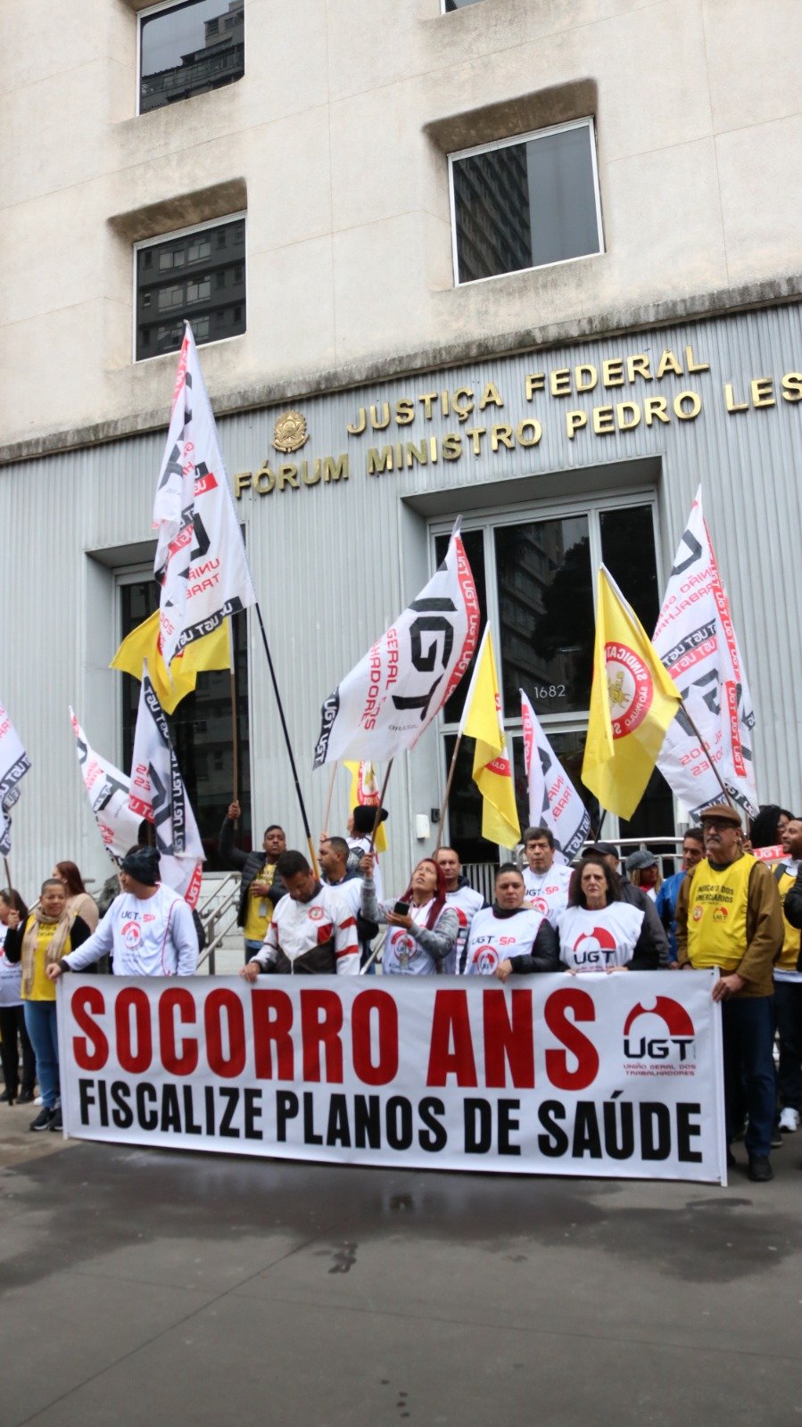 A União Geral dos Trabalhadores (UGT) e o Sindicato dos Comerciários de São Paulo (SECSP) realizaram na manhã desta quinta-feira (4) um protesto em frente à sede da Justiça Federal, na Avenida Paulista, para denunciar os abusos praticados por operadoras de planos de saúde e exigir uma atuação mais rigorosa da Agência Nacional de Saúde Suplementar (ANS).