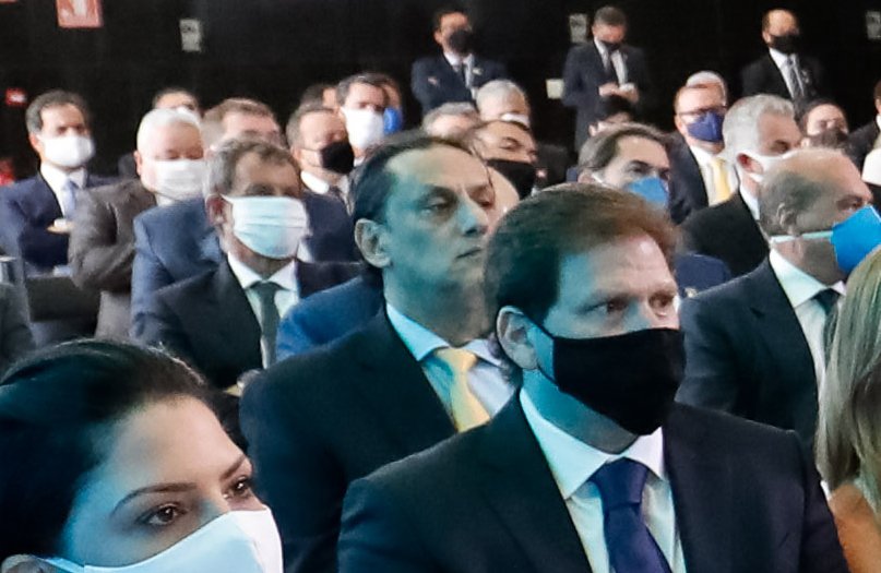 Advogado Frederick Wassef (sem máscara) participou da Solenidade de Posse de ministros na quarta-feira (17) em Brasília, um dia antes da prisão de Queiroz em sua casa em Atibaia – Foto: Alan Santos/PR
