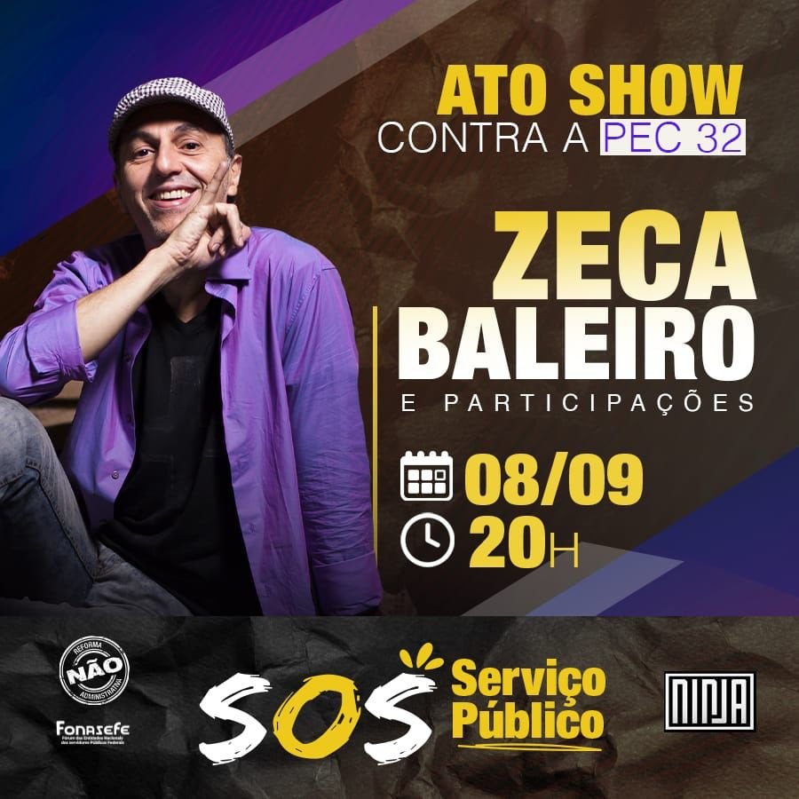 Por isso, a campanha #SOSServiçoPúblico organiza uma grande live com a participação de artistas e parlamentares, com apoios de peso para seguirmos ainda mais firmes na luta contra a PEC 32.